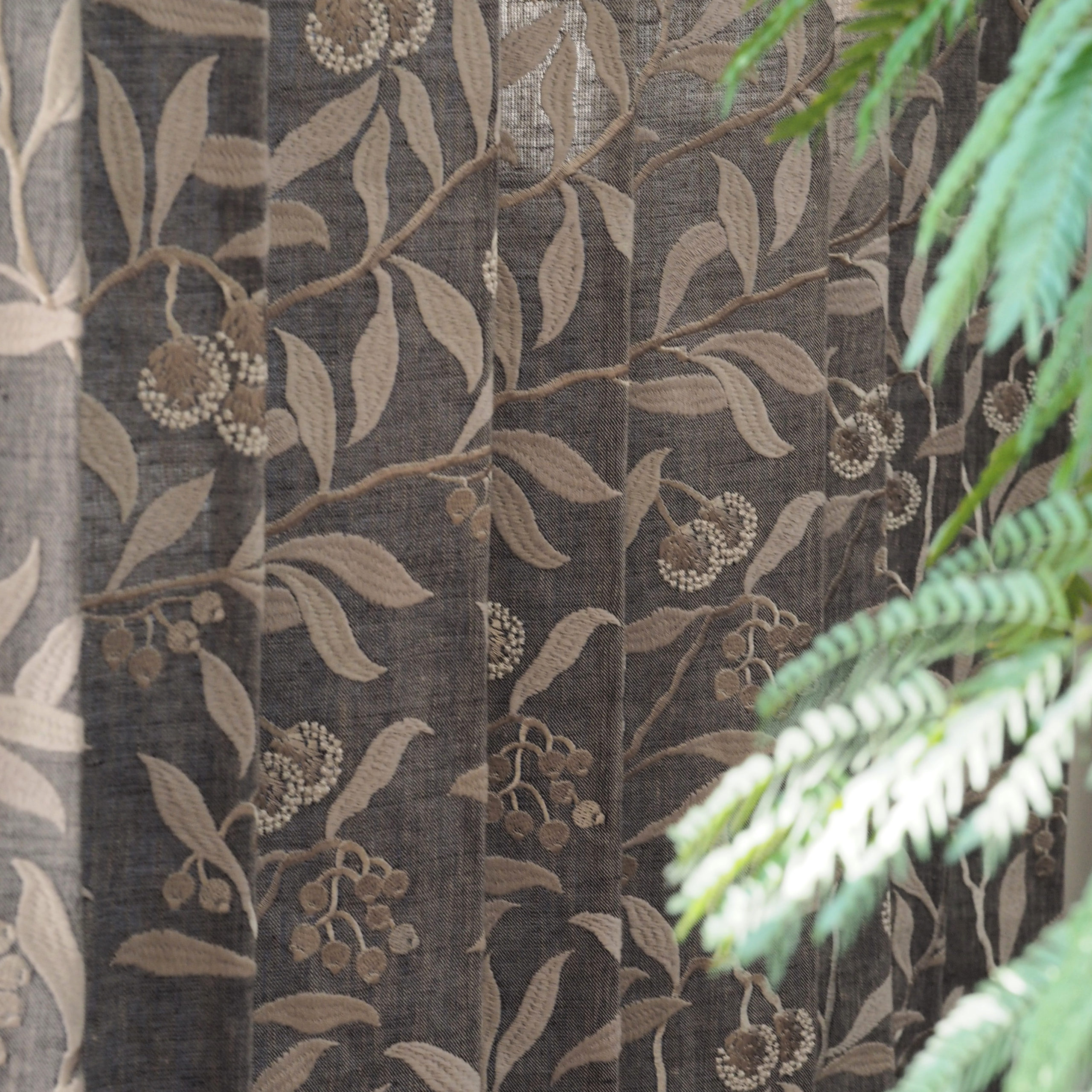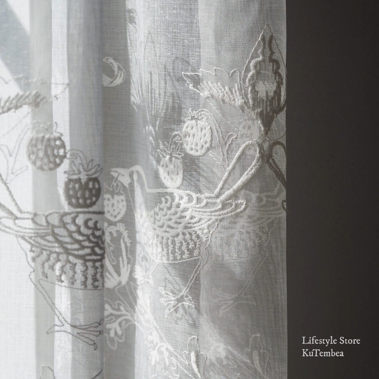 今回ご紹介するのは・・・ 可憐で美しい、雨の雫モチーフの刺繍柄リネンカーテン……