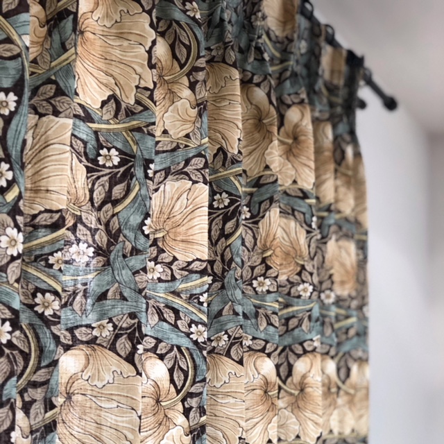LDKのnatsusobikuさんのリネンのカーテン、寝室のモリスのオリエンタルなカーテン、それぞれ合わせたタッセルもすべて、大満足です!店主様とは好みが似ているようで、打ち合わせもとても楽しかったです。生地選びに迷走し、採寸後にやはり変更したいなどとわがままを言いましたが、快く最後まで親身になってお付き合いくださりありがとうございました。新居にカーテンを取り付けたとたん、がらりとお部屋の雰囲気が変わって、まるで魔法のようだなと感じました。部屋の大きな面積を占める部分だけに、妥協せず、本当に気に入ったカーテンを選ぶことができてよかったと思ってます。本当にありがとうございました。