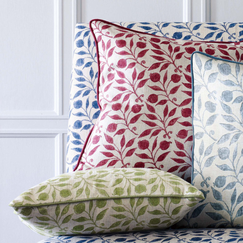 リネンベースのローズヒップ柄は