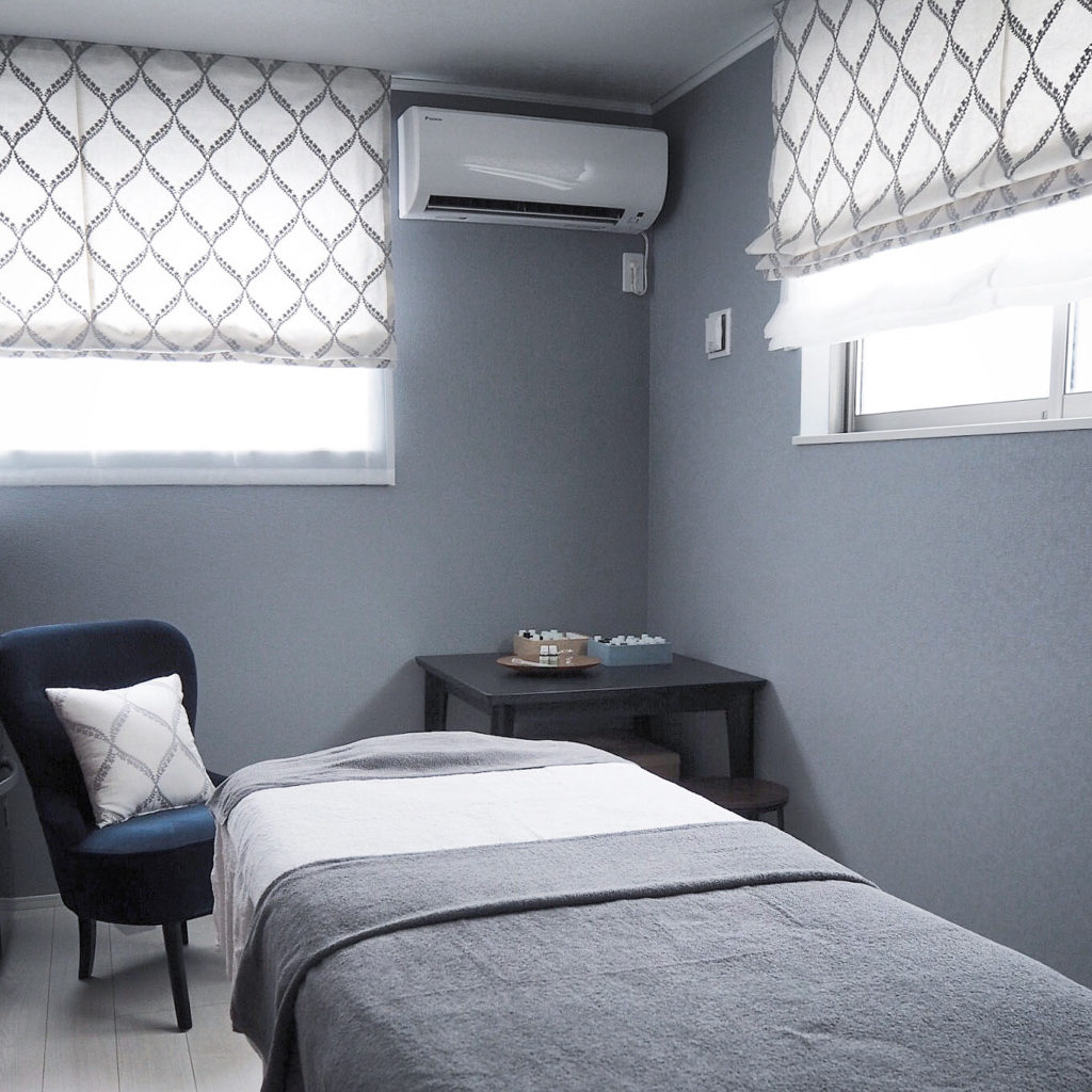 グレーのタオルが似合う大人かっこいい施術ベッド