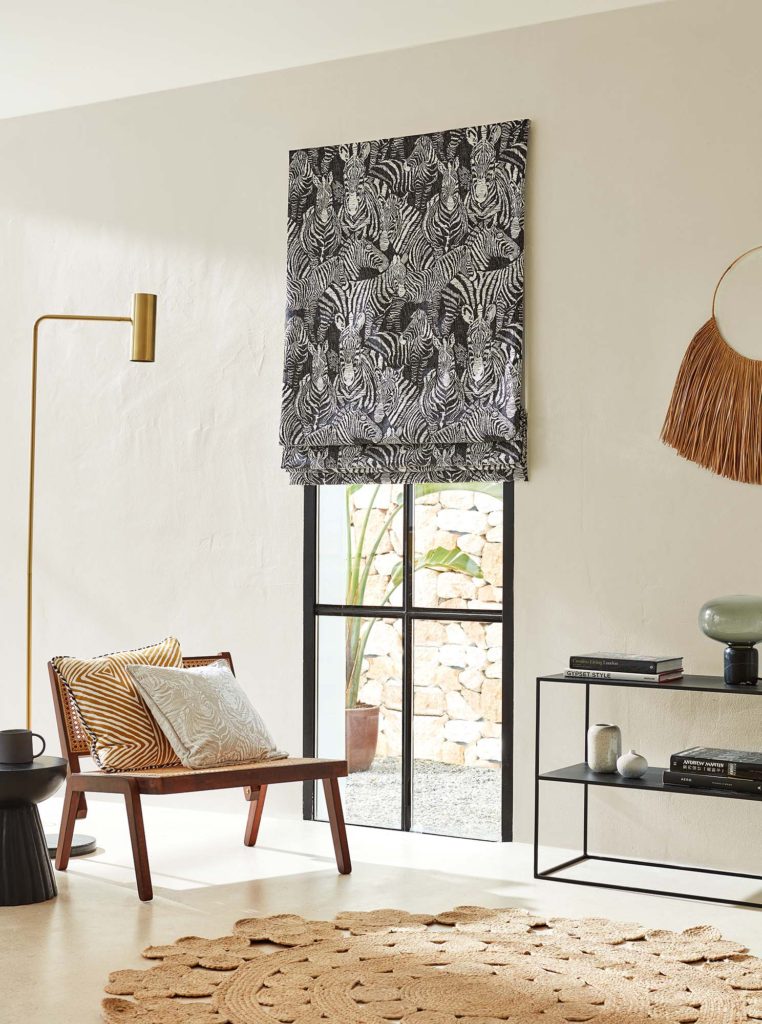 こちら生地、イギリスのインテリアファブリックで織物のゼブラ柄