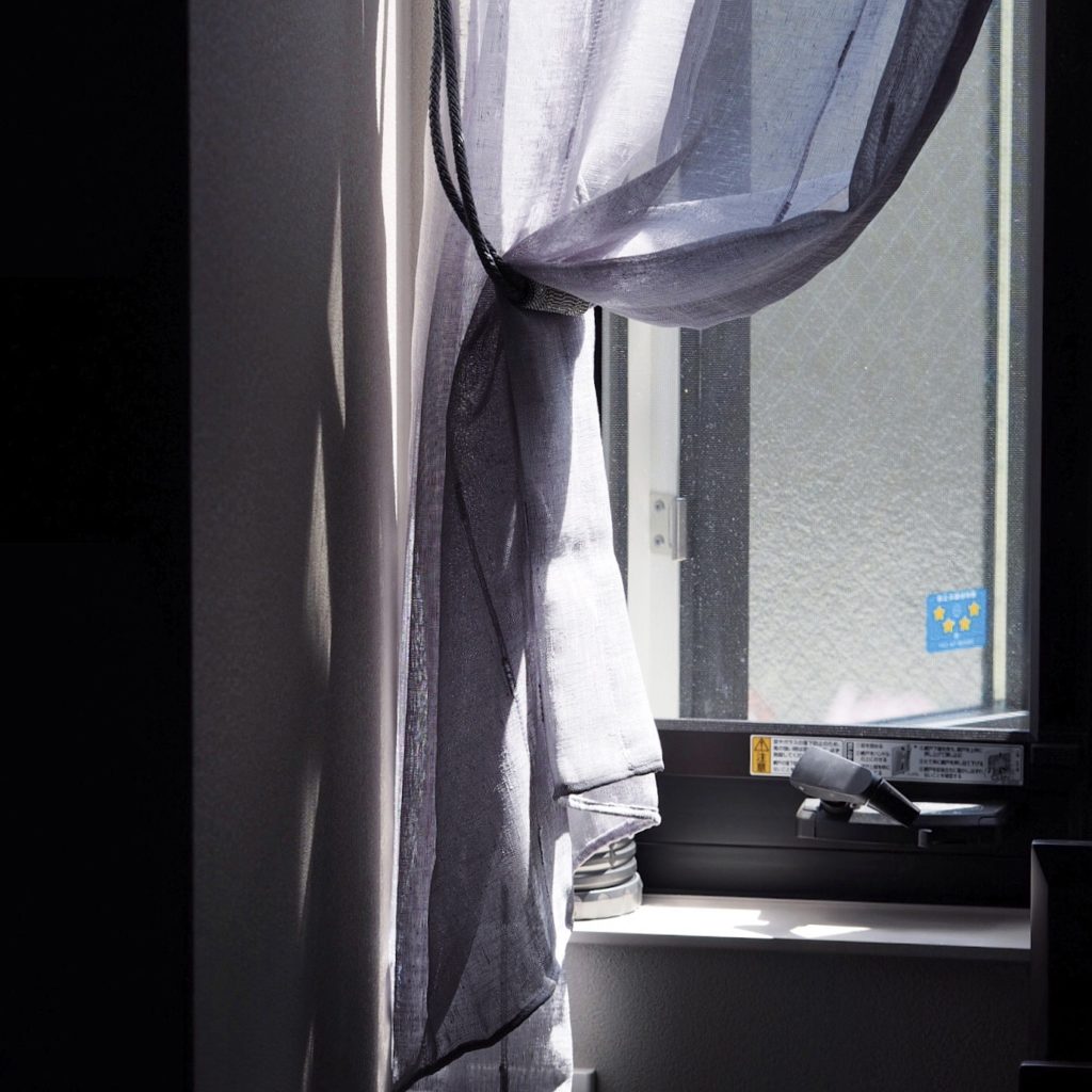 アクセサリーのようなグレーのカーテンタッセルをアクセントに
