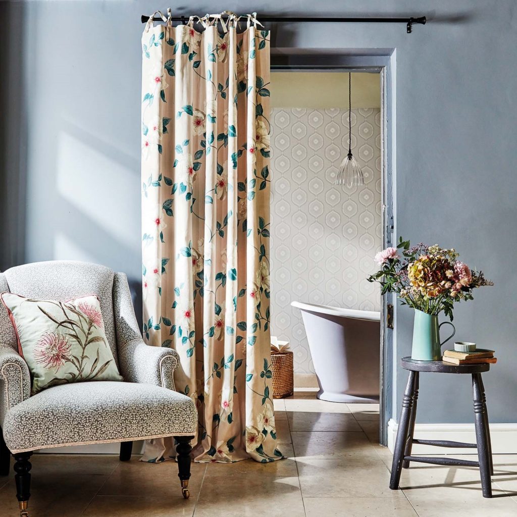 ナチュラルなバラのカーテンを見ながらのおうち時間は、夢ごこち気分でいつものお茶も美味しく感じられそう♪