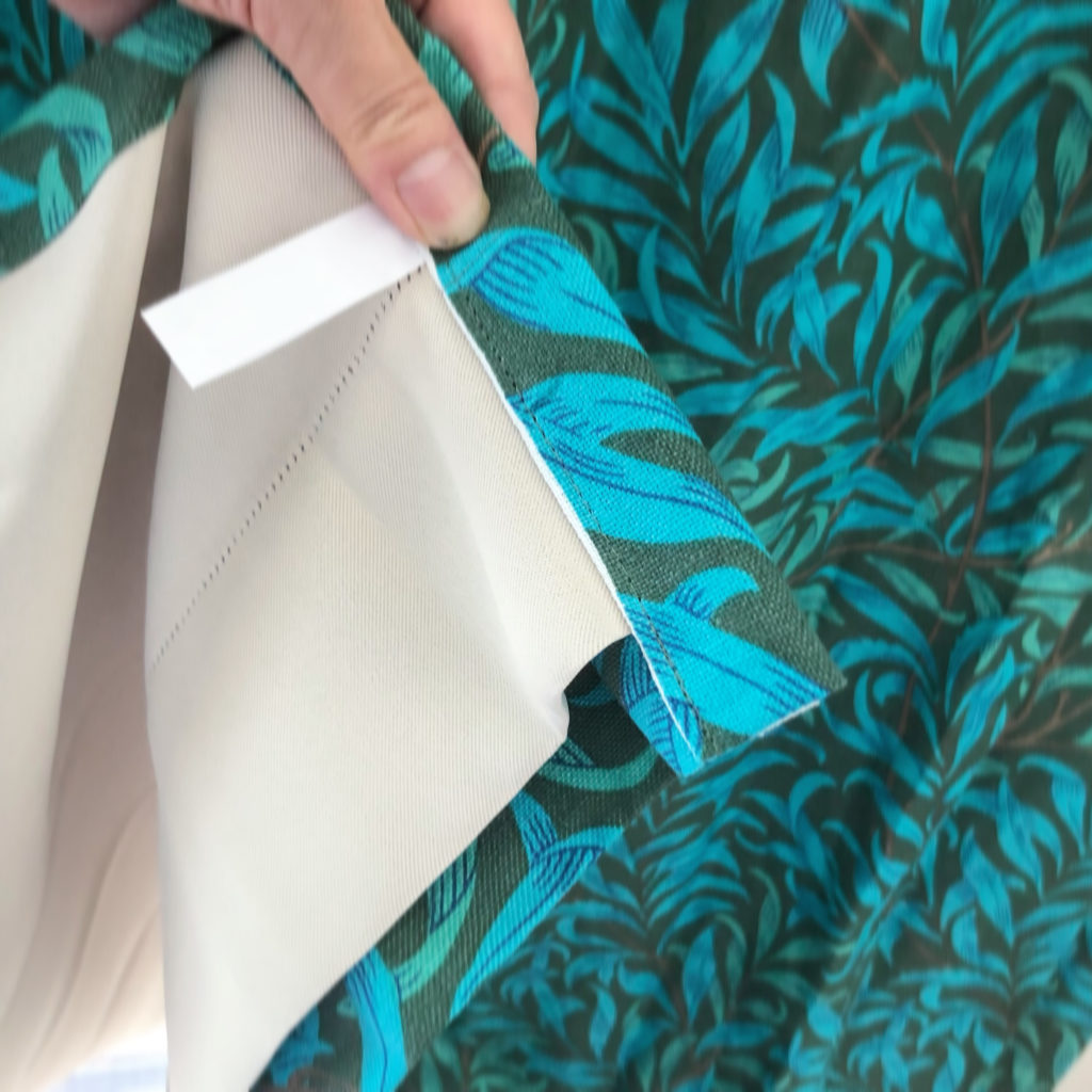 KuTembea ではまずは好きな生地をお選び頂いて、遮光生地でない場合、その生地の裏に遮光生地を縫い合わせてお仕立てします。