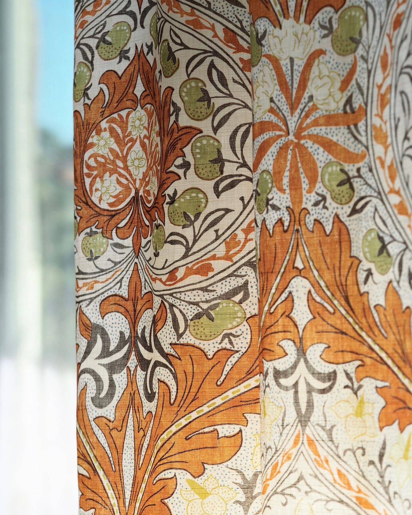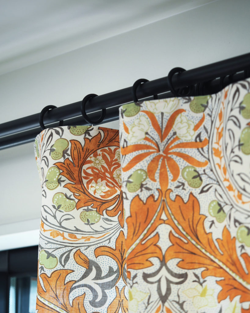 こんな大胆な柄いきならタックをつままないフラットカーテンがおすすめ