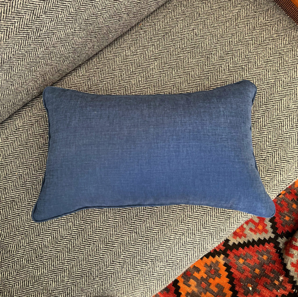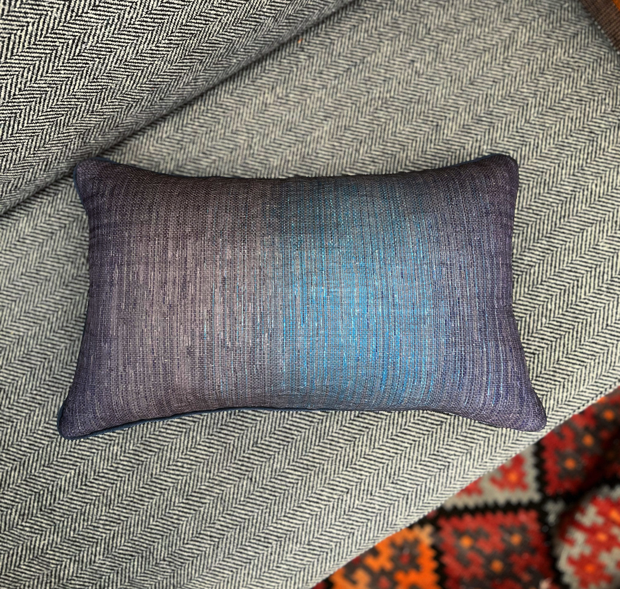 この先にあるデニム素材のソファにクッションが置かれる予定です。