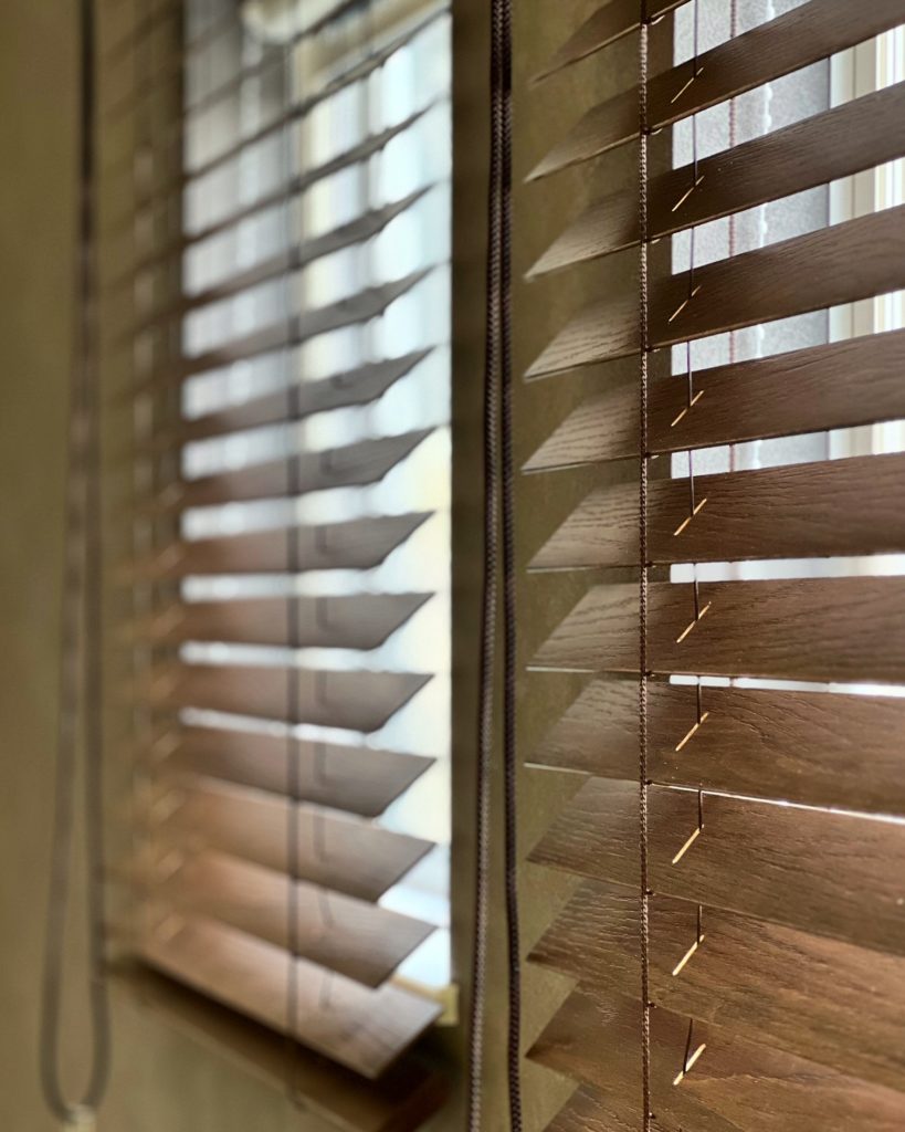 その他の窓は、扉がウォールナット系の色だったので同じ色で木製ブラインドにして、色数を少なくまとめました