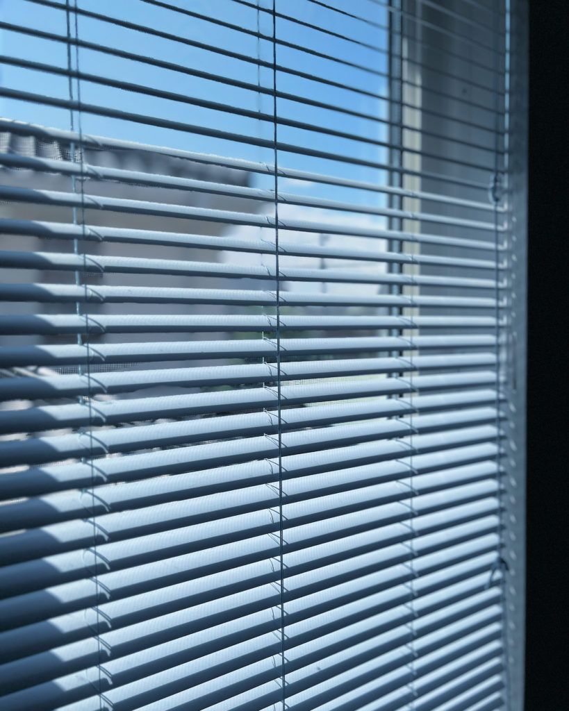 リビングには小窓に既に設置されている水色のブラインドとのバランスもよく