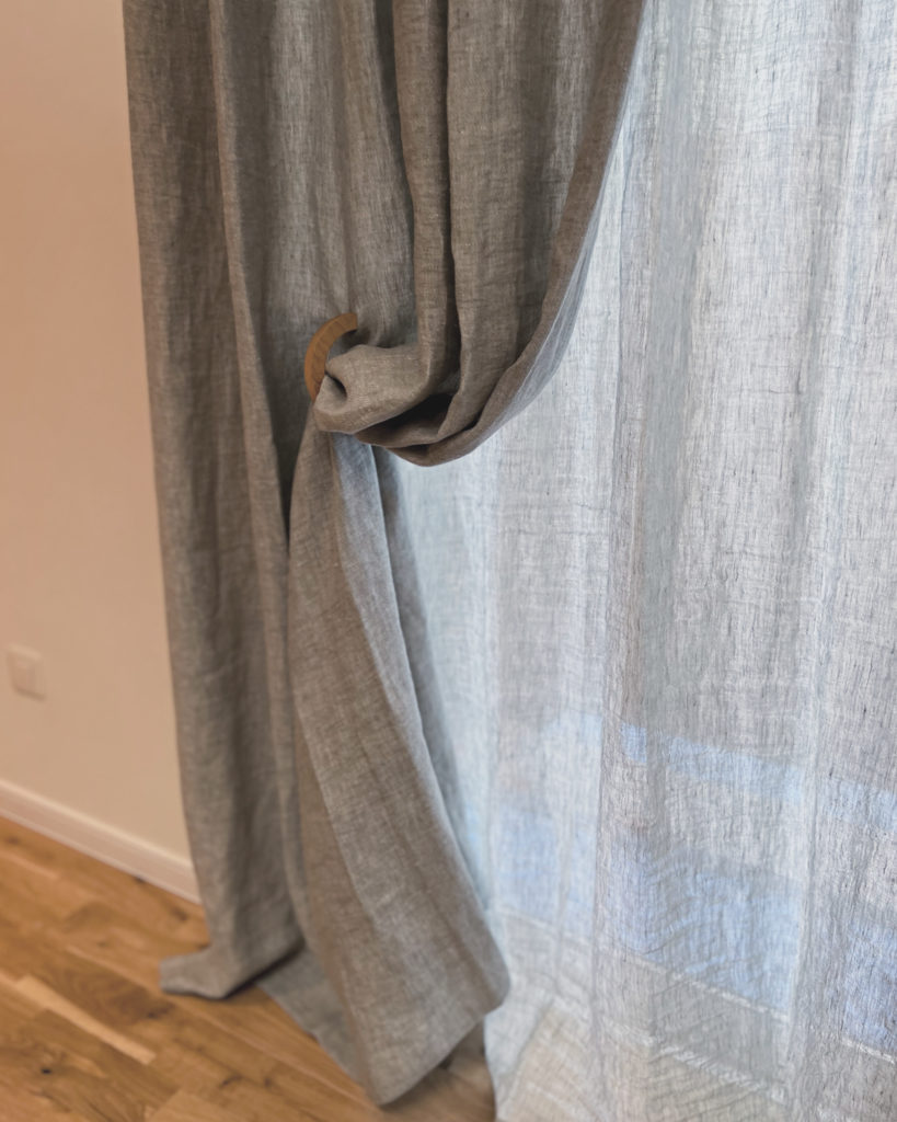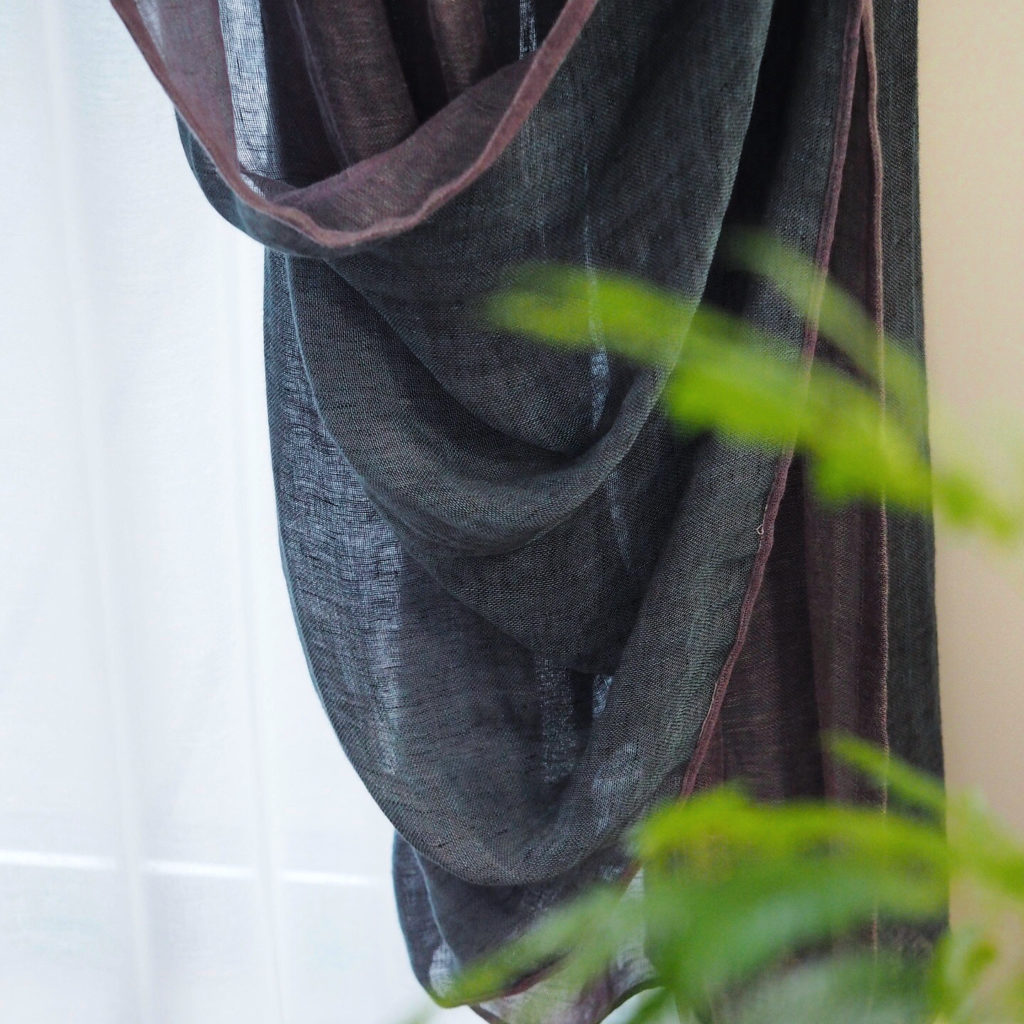 上質さを感じるしっとりとした手馴染みのリネンカーテンは、いつまででも触れていたくなる素材感。