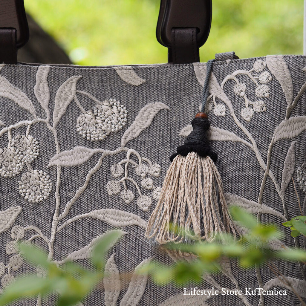 お店で取り扱いさせて頂いておりますタッセル作家ペレさんに生地合わせて製作して頂きました。