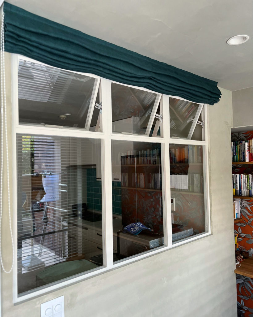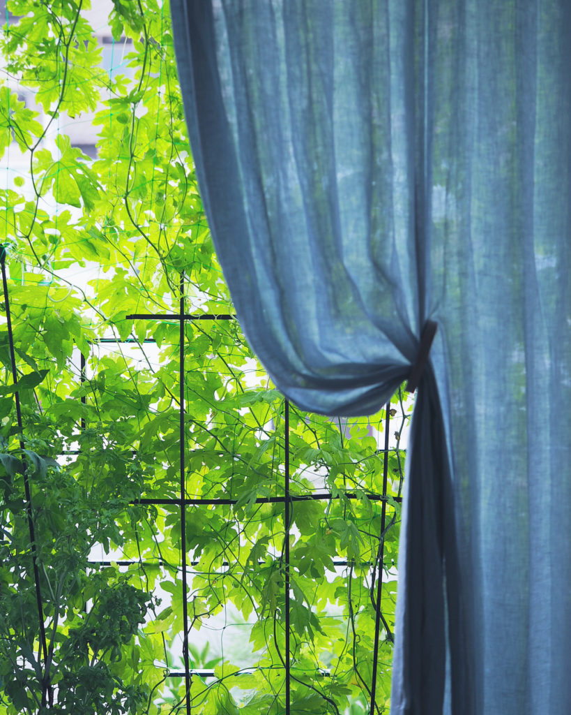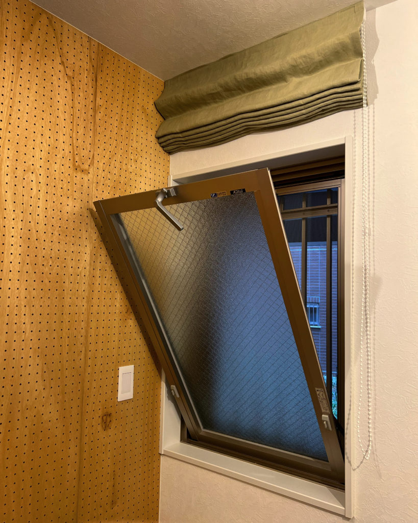 少し上げることでくったりとした素材感が出てきて魅力的な窓。