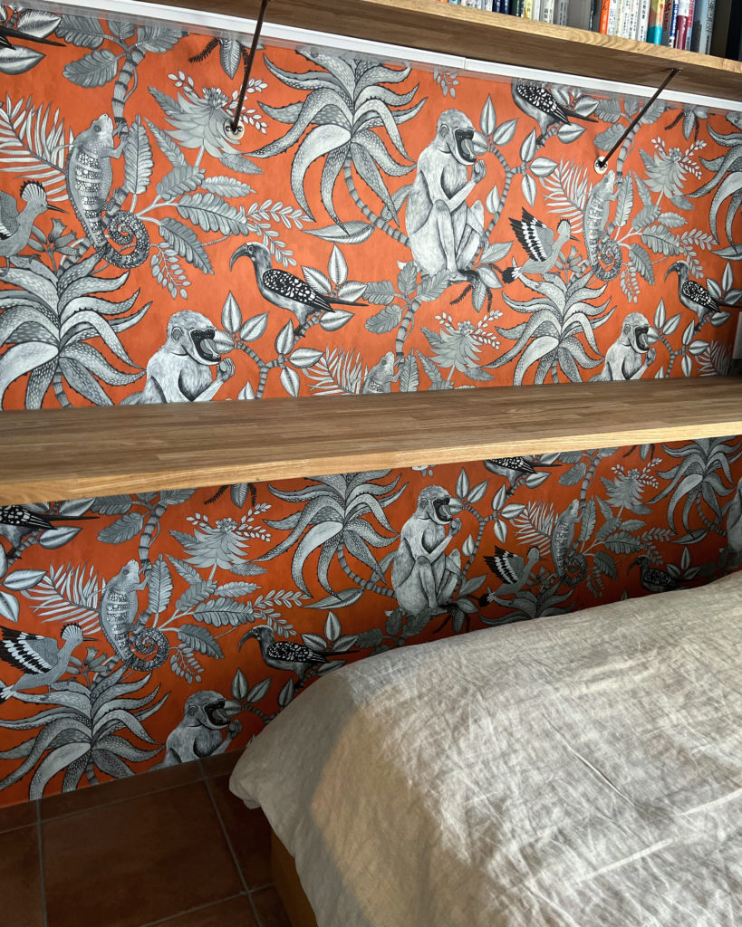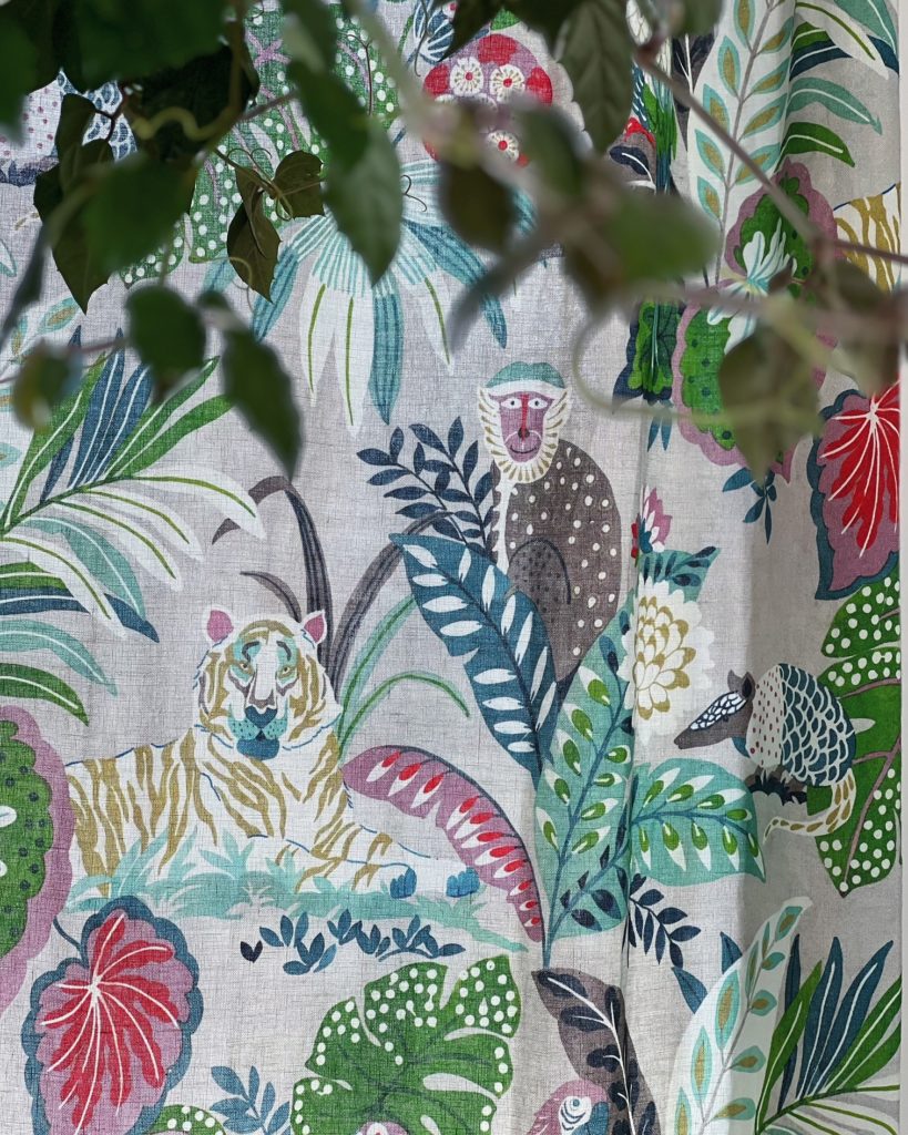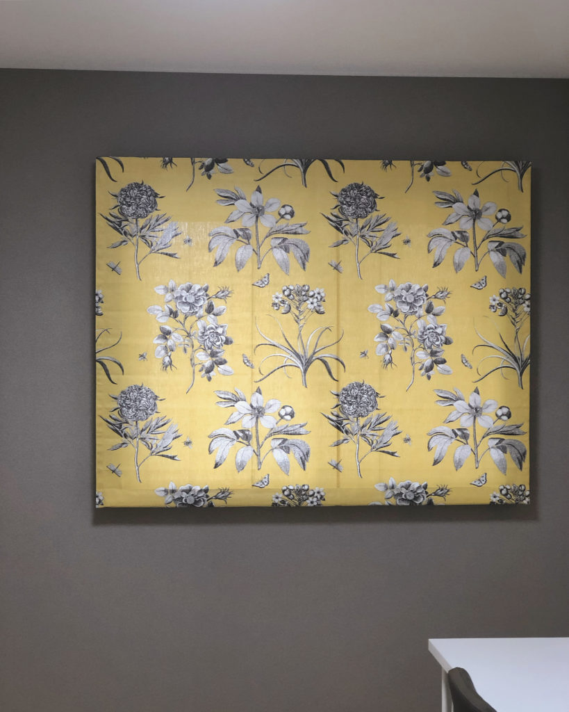 以前お揃い生地でご注文頂いたカルトナージュのカレンダーやマガジンラックが更にお部屋にまとまり感を与えてくれます。