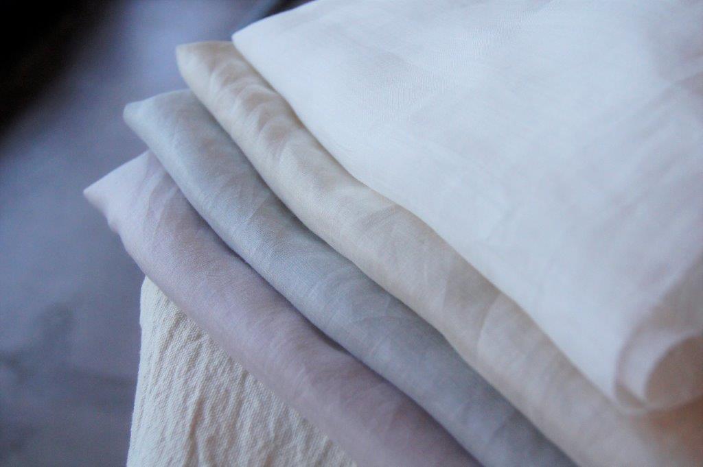 まずは榛(はしばみ)。しわ感と光に透けた感じがリネンならではの質感!