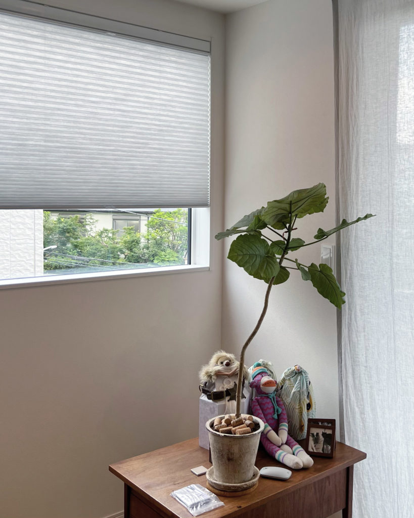 リビングでは柄ものをお選び頂きましたが和室、寝室はリネンの無地をお選び頂きました。