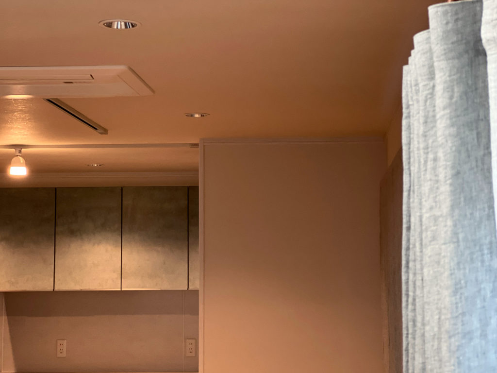 天井のこげ茶の壁紙との相性も抜群!