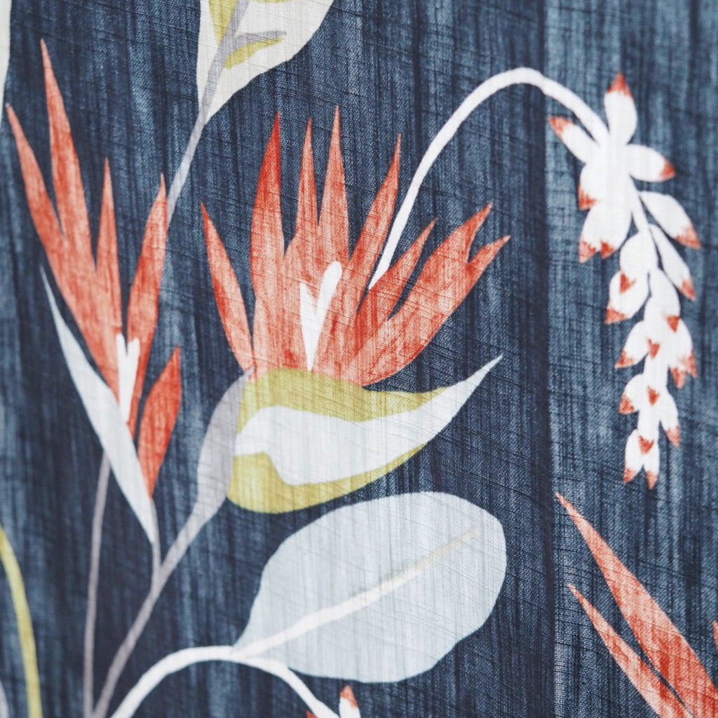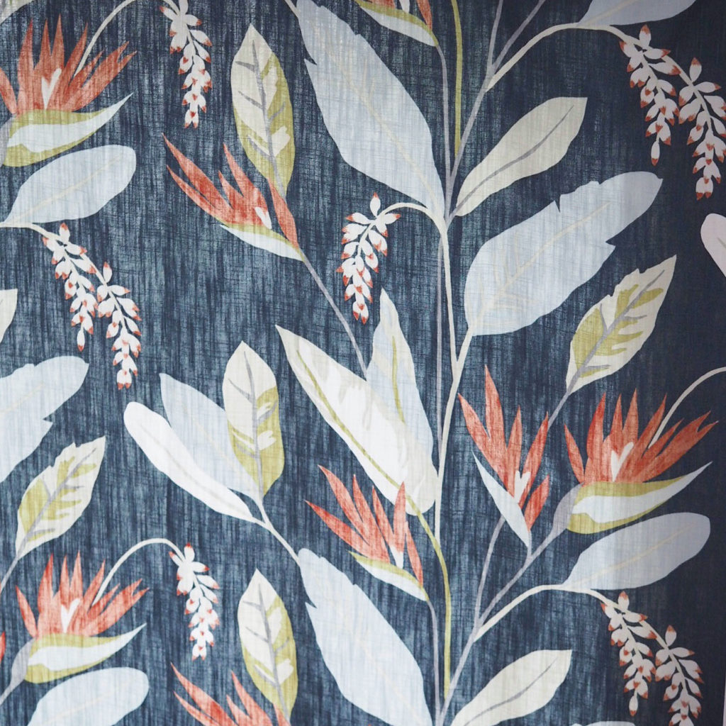 邪魔にならず庭との一体感が感じられるそんなイメージで大きな窓にお選びになったのは、スペイン製のリネン素材の赤い花が印的な草木柄の生地。