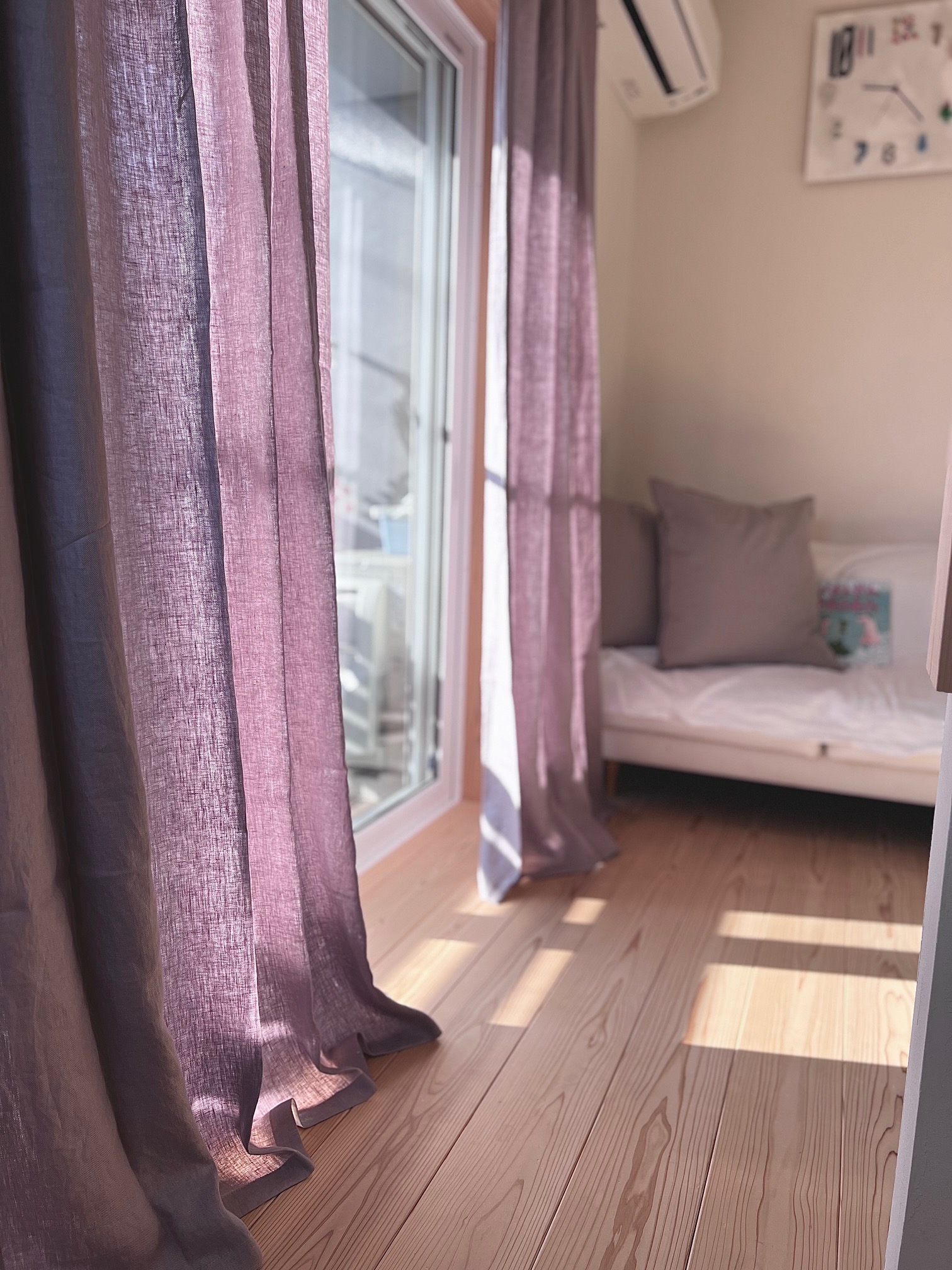 今回ご紹介するのは… 海の近くでリノベーションしたお宅のカーテン イメージはリネン……