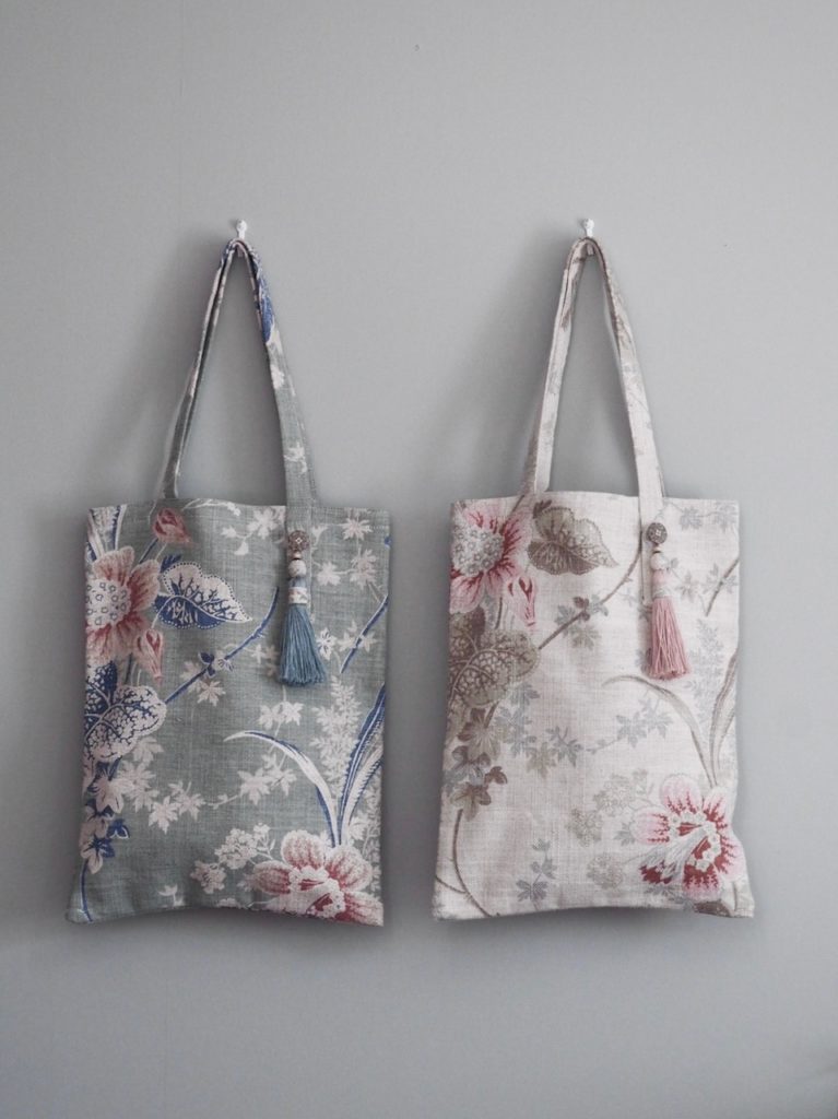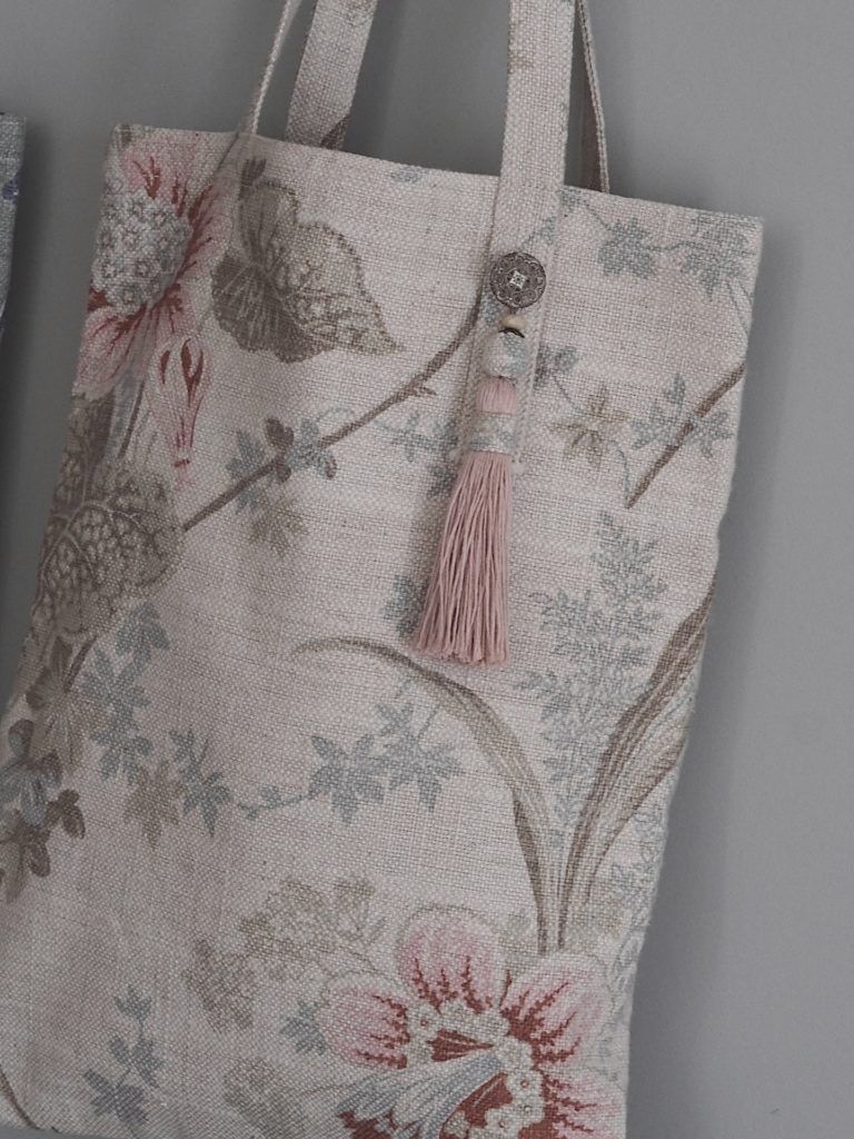 ① コットンリネンの花柄トートバッグ (クラシックフローラル/コットンリネン)