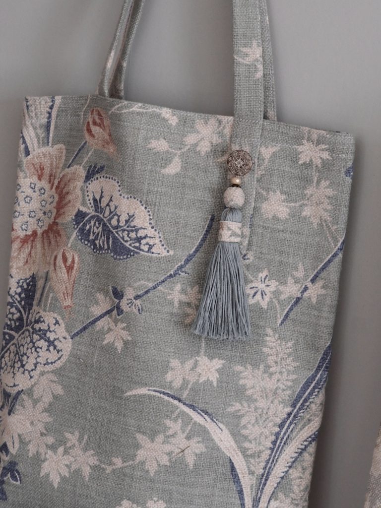 タッセルはバッグ素材に合わせてリネンを使い、ナチュラルで優しい雰囲気に。