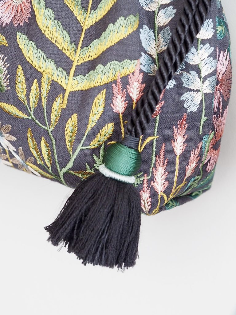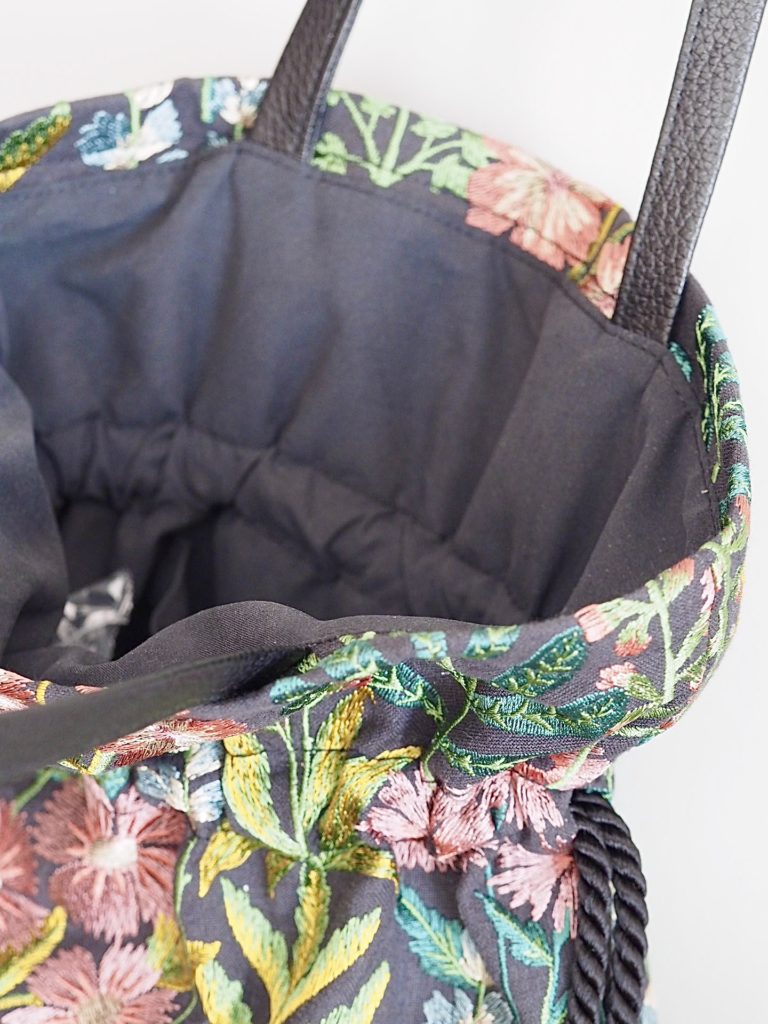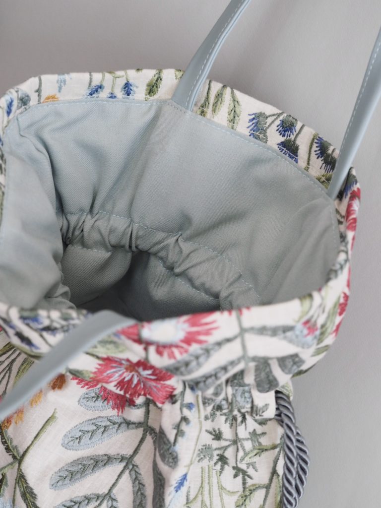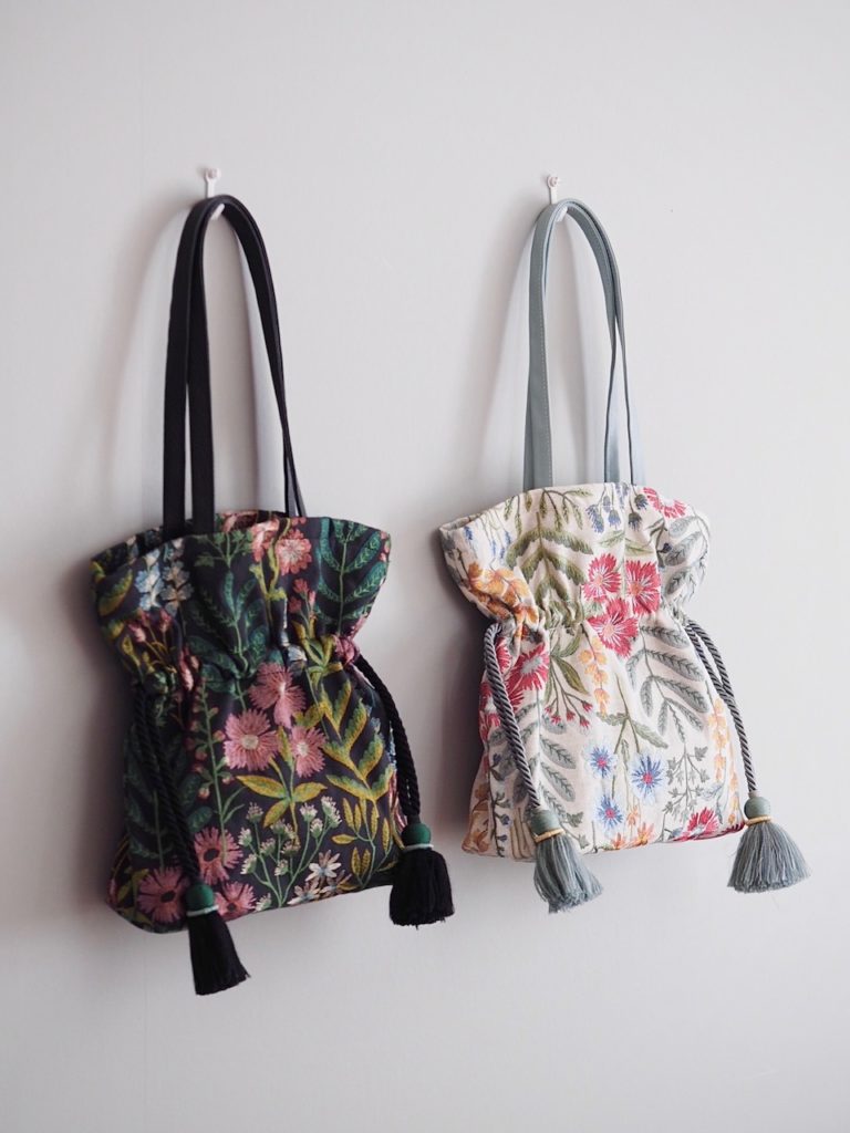 ③ ワイルドフラワー刺繍生地 巾着トートバッグ