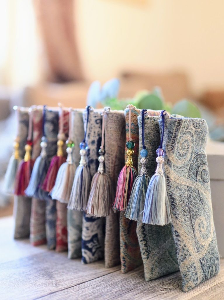 こだわりのテキスタイルから生まれた、タッセル付きメガネケース。